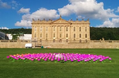 Artist Andrew Lee has created a stunning installation for the RHS Chatsworth Flower Show that features 201 flags covered in 3M™ Dichroic Film as its centerpiece.